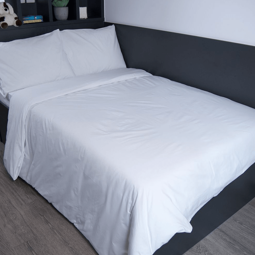 With a 58-thread count, this polycotton duvet cover offers the perfect blend of softness and durability, ensuring comfort night after night. Its 160×220 cm size is designed to fit seamlessly into your bedroom, providing a breathable and cosy layer for restful sleep. Transform your bed into a sanctuary of comfort and style with this essential addition to your bedding collection.